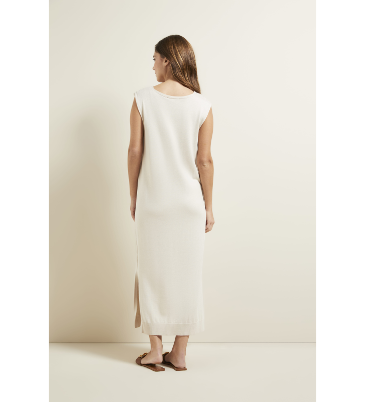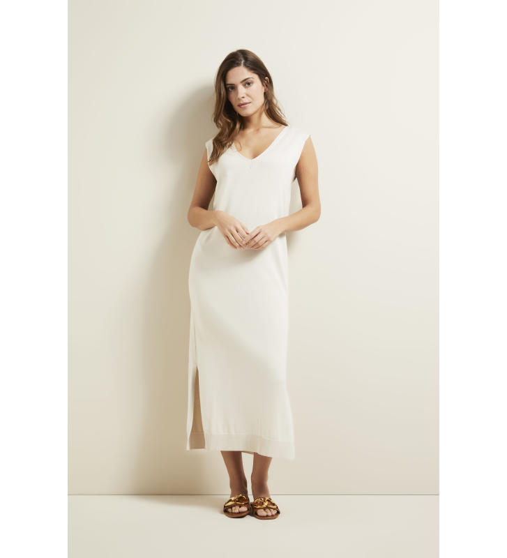 Длинное трикотажное платье без рукавов с боковыми разрезами из эластичной качественной вискозы.