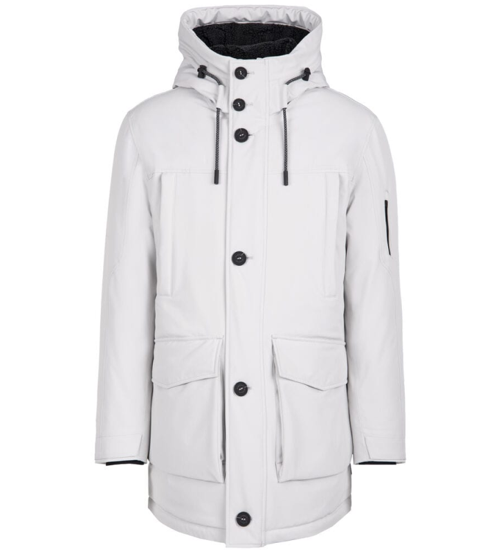 Вода та вітер не мають шансів проти цієї дихаючої дощовика з теплою підкладкою. Крім фіксованого капюшона, на подолі рукава є приховані гнучкі манжети, а ззаду - регульована куліска. Підкладка повністю виготовлена з переробленої бавовни. Дві стьобані бічні кишені, дві нагрудні кишені, одна кишеня на рукаві та дві внутрішні кишені забезпечують багато місця для зберігання.