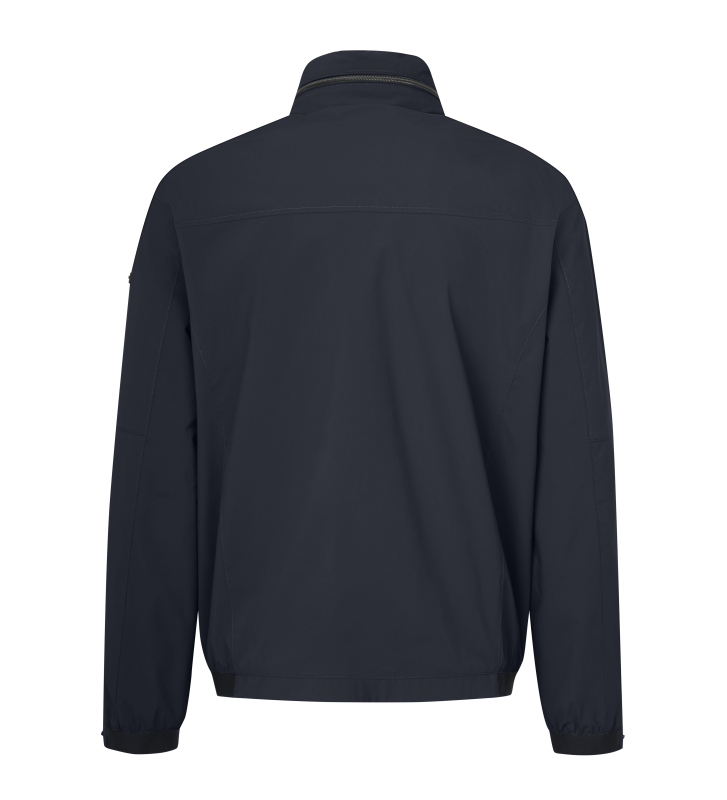 Сучасна куртка з коміром-стійкою та прорізними кишенями з частково потайними блискавками. Поділові шви на плечовій кокетці, посередині рукавів і над кишенями. Бічні манжети на подолу та на кінцях рукавів. Внутрішня частина блузони повністю підкладена та має кольорові акценти через внутрішні кишені та гнучку задню стрічку. Реч з функцією розтягування вражає своїми водонепроникними властивостями і водночас не містить PFC.