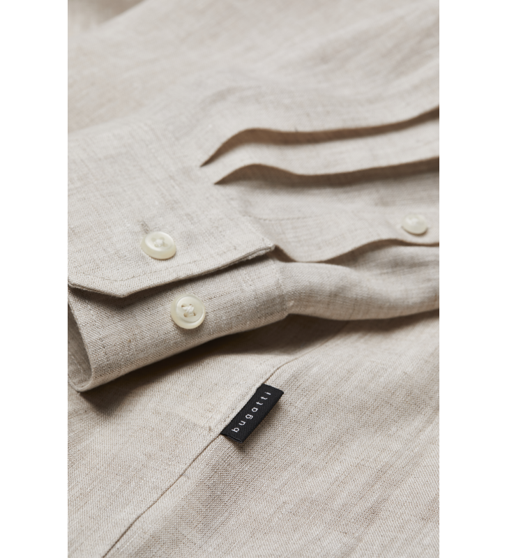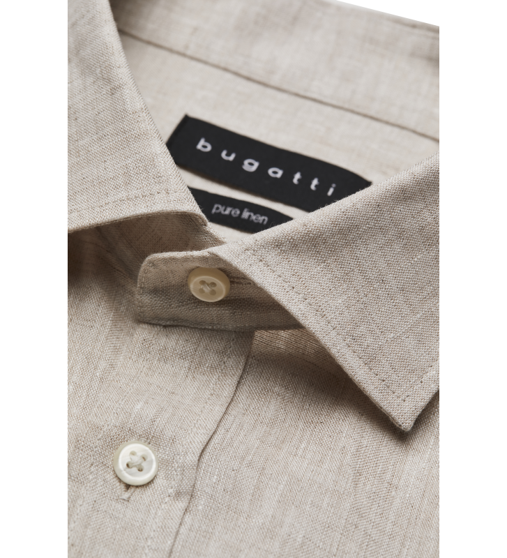 Однотонна сорочка зі 100% льону з коміром Кент, без контрастів, прапор Bugatti в боковому шві
