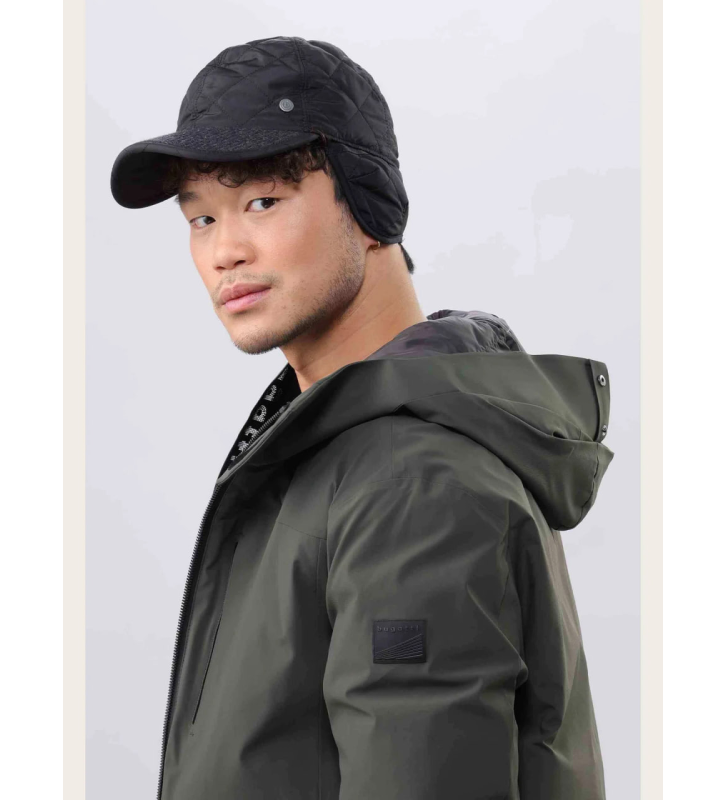 Изысканный головной убор для холодного времени года: бейсболка bugatti поражает своим стеганым видом и козырьком, имитирующим вязаный.
