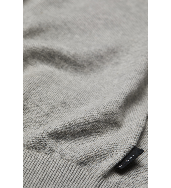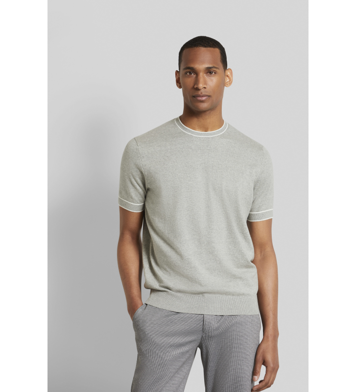 Трикотажная футболка с рукавом 1/2, контрастными полосками на воротнике и манжетах, ребристыми манжетами и нижним краем, биркой с флагом Бугатти в левом боковом шве.