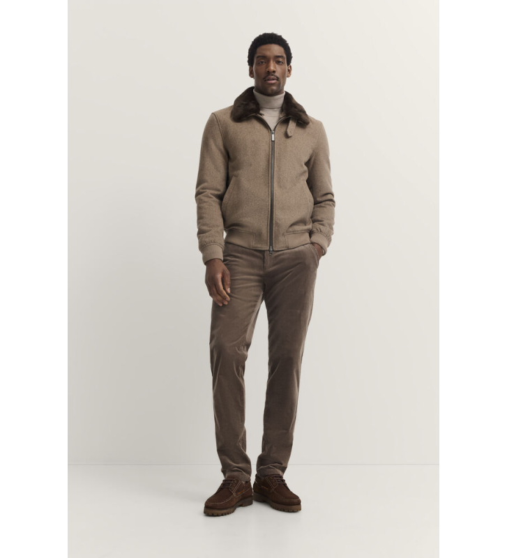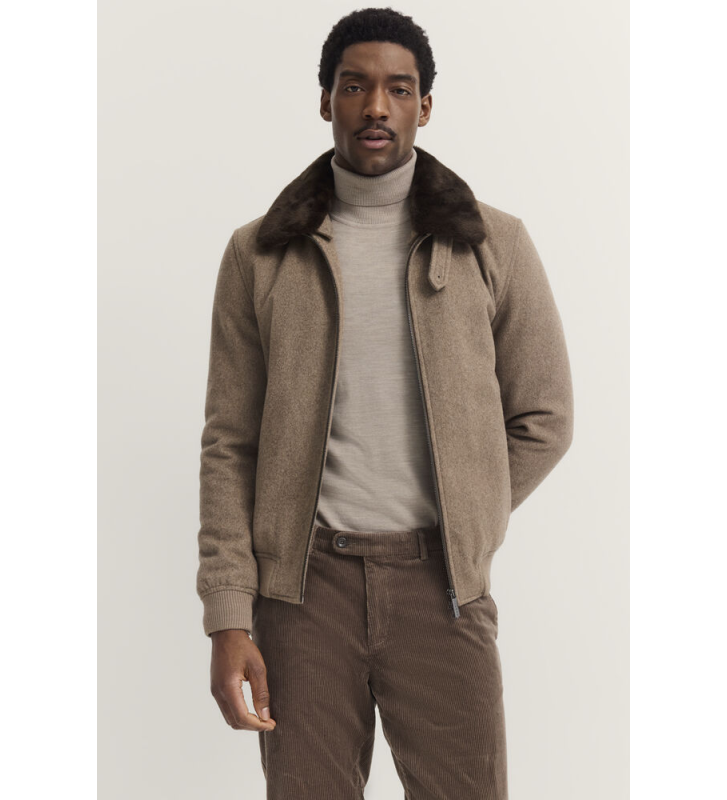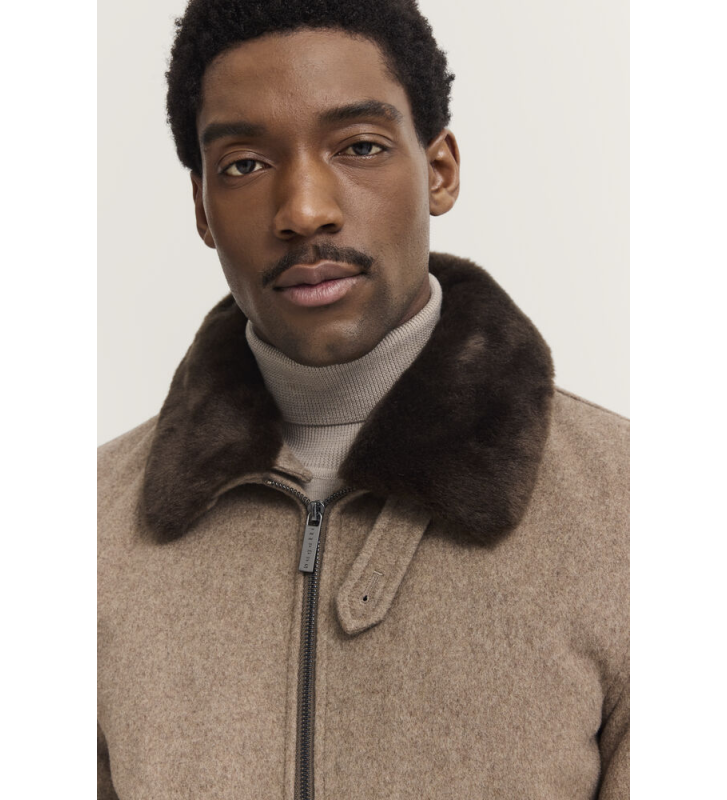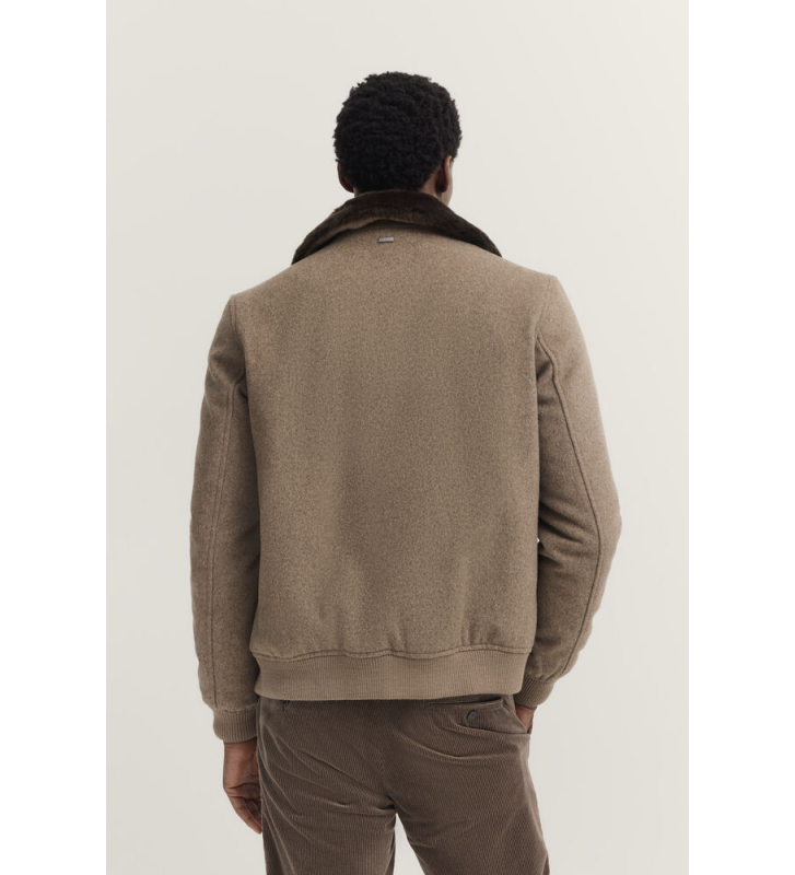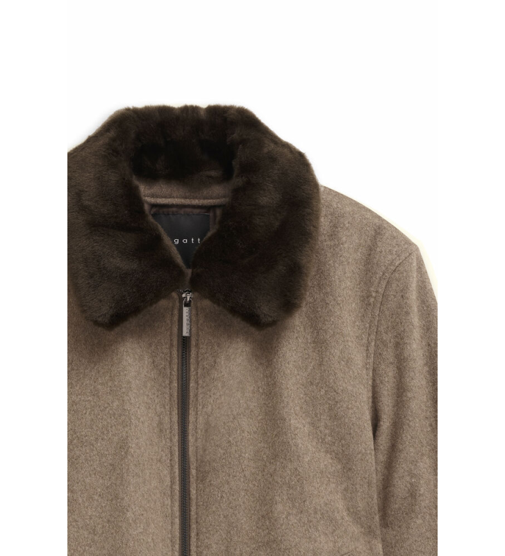 Шерстяная куртка с отложным воротником и съёмной отделкой из искусственного меха. Косые боковые карманы на потайных кнопках и молния по всей длине спереди. Эластичные трикотажные вставки по низу и на манжетах рукавов. Полностью на подкладке, с внутренними карманами. Изделие изготовлено из 70% шерсти, лёгкое и удобное.