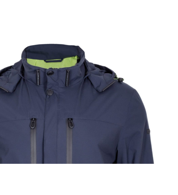 - боковые прорезные карманы на пуговице, 2 нагрудных кармана на молнии и внутренние карманы