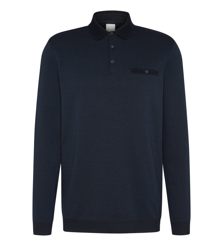 Рубашка-поло с длинными рукавами впечатляет структурированным воротником и нагрудным карманом, который также имеет структуру.