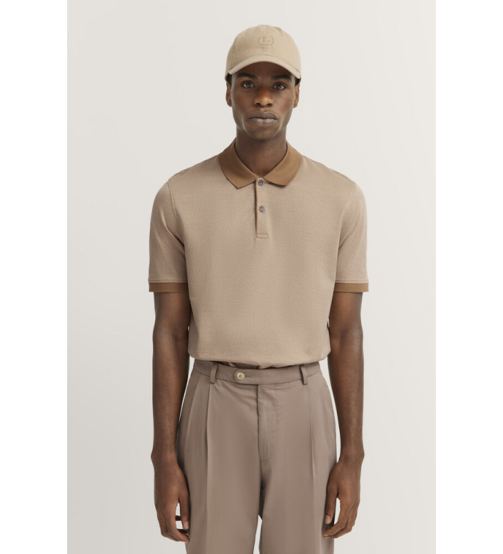 Благодаря фактурному принту и застежке на две пуговицы, это поло излучает элегантность.