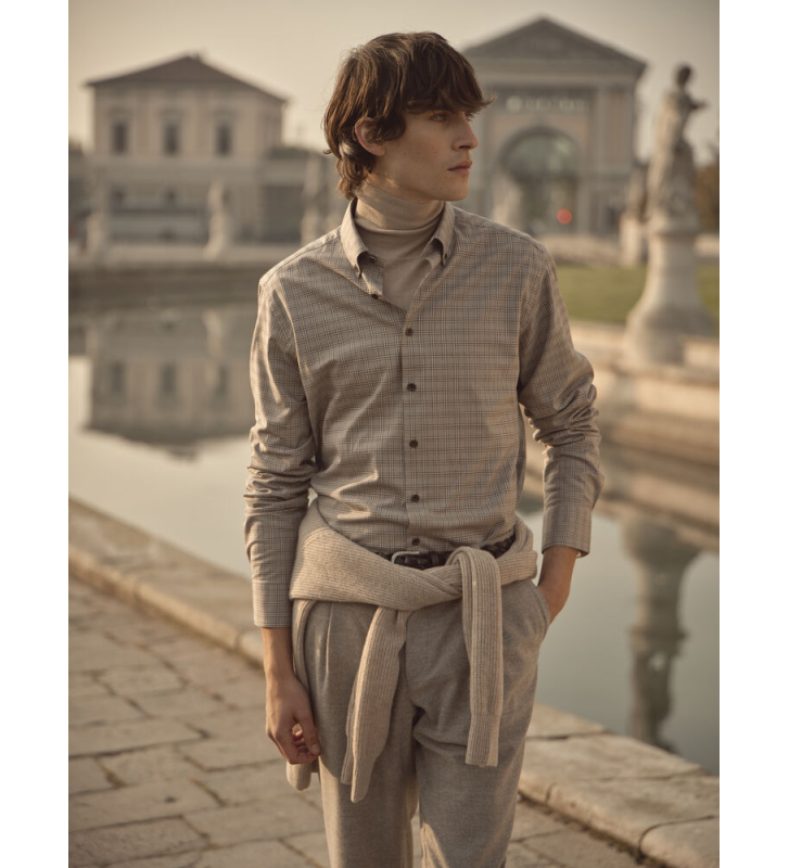 Спортивный воротник на пуговицах и планка с пуговицами.