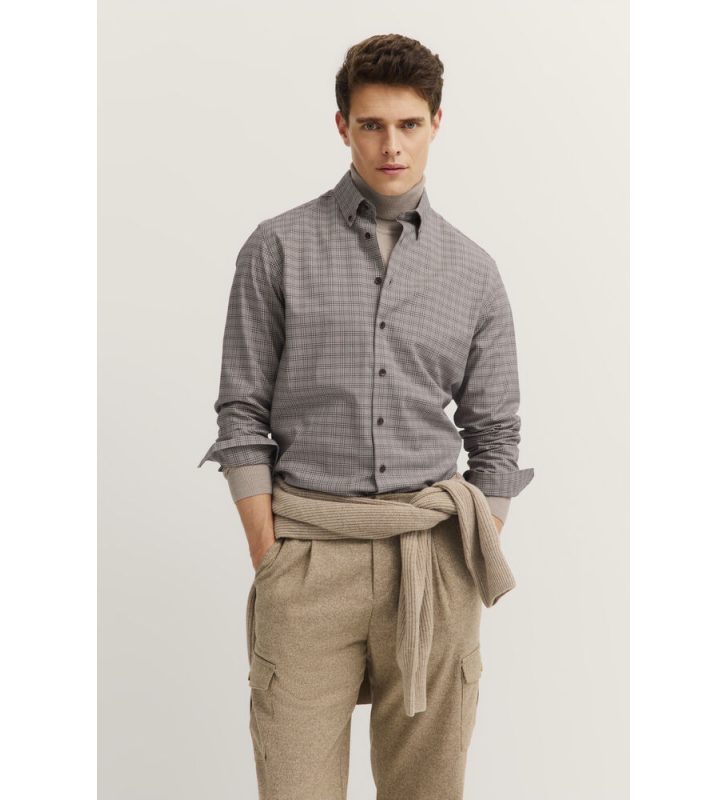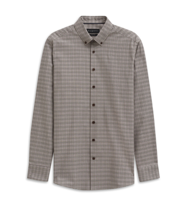 Рубашка из хлопка, фактурная ткань «добби», кант на внутренней стороне воротника, логотип Bugatti в боковом шве, лёгкая в уходе отделка.