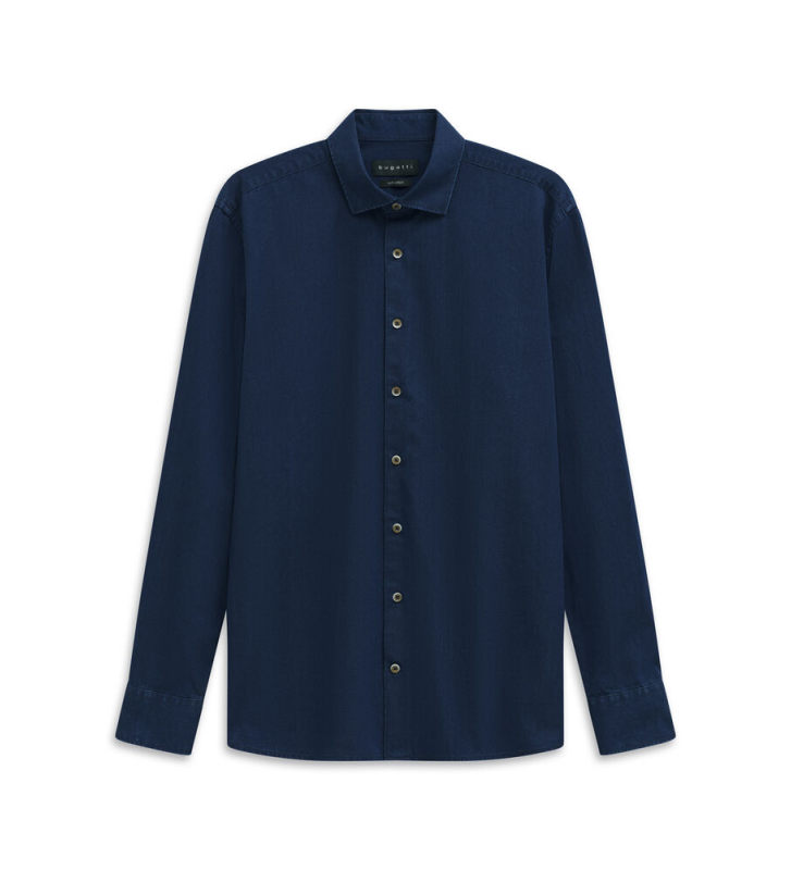 Джинсовая рубашка с воротником Kent и логотипом Bugatti на боковом шве