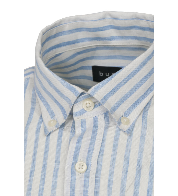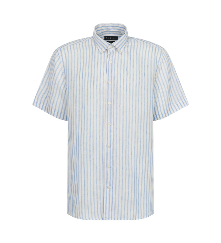 Простая рубашка из 100% льна, отложной воротник на пуговицах и нагрудный карман, логотип bugatti в боковом шве, рукав 1/2
