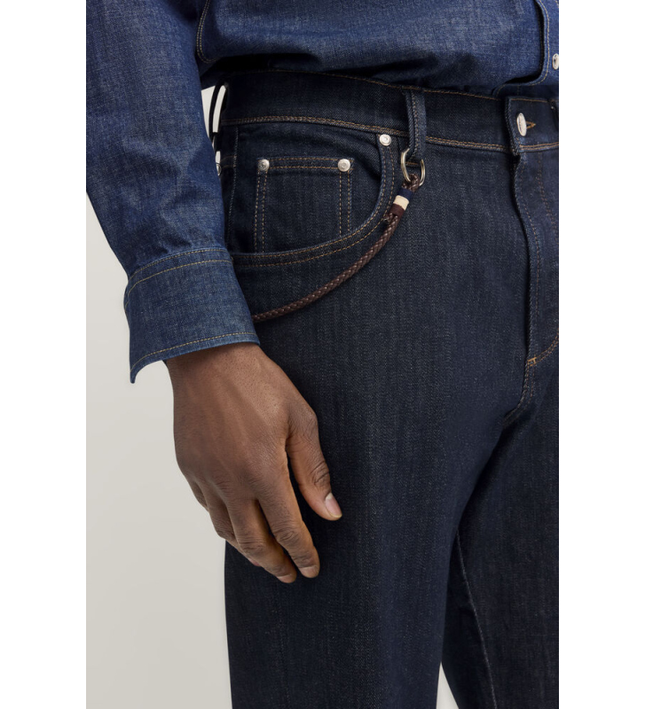 Модель оснащена классическими задними карманами, одним карманом для монет и карманами с клапаном, а также практичными петлями для ремня.