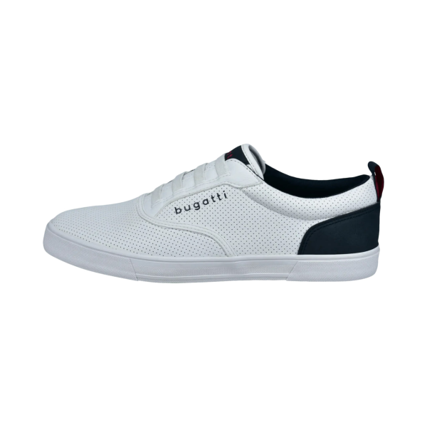 Белые кеды из группы Sonoma украшены перфорацией, что оптимизирует воздухообмен, чтобы ногам было прохладно и комфортно во время длительного ношения.Эти мужские кеды от bugatti изготовлены из качественных и экологически чистых материалов, что уменьша..
