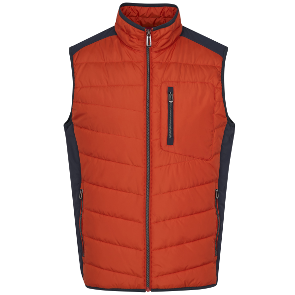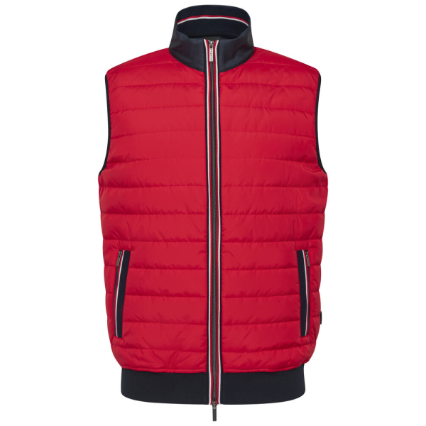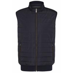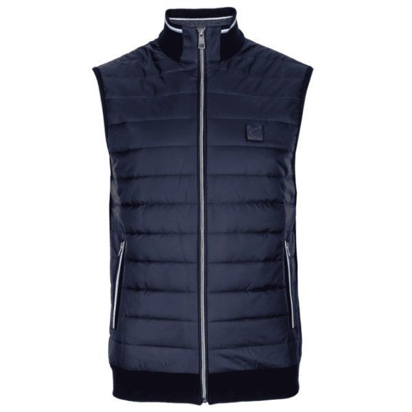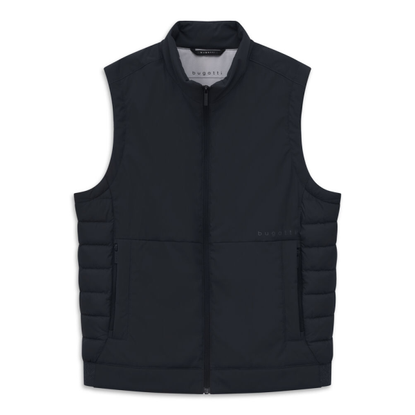Мужской жилет Bugatti из микса материалов со стеганым передом и спинкой, а также воротником-стойкой.Нестеганая стрейчевая ткань по бокам и на плечах создает цветовой контраст.Прямые боковые карманы на молнии и накладной нагрудный карман на молнии.Жил..
