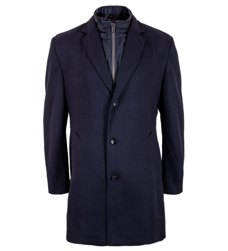 Мужское пальто от Bugatti из трикотажа, воротник с отворотом, боковыми прорезными карманами разрезом сзади.