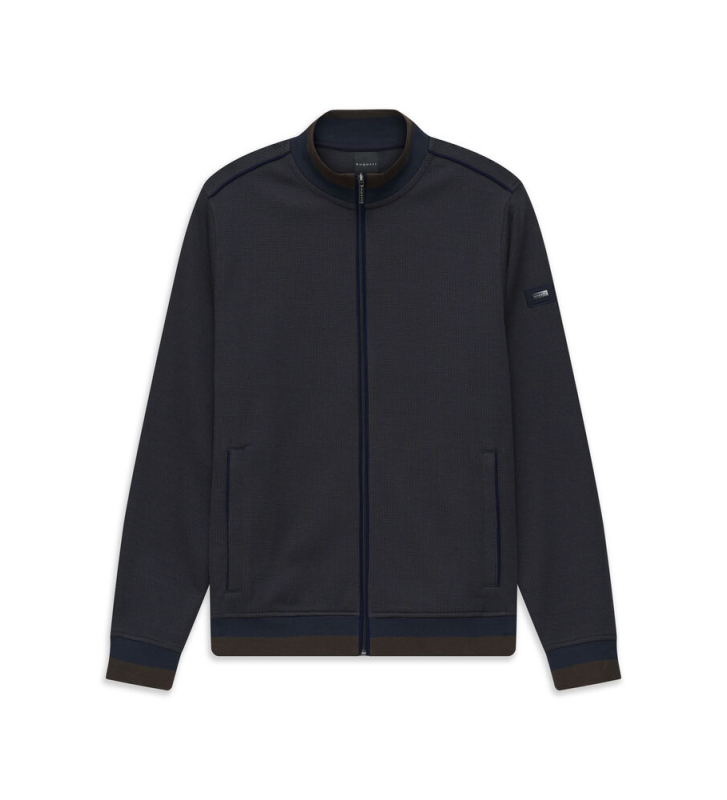 Мужской джемпер с длинной застежкой Bugatti, изготовленный из высококачественного материала, предлагает исключительное сочетание мягкости и долговечности.