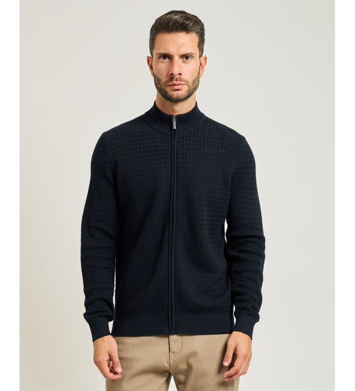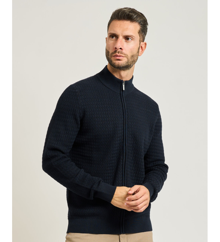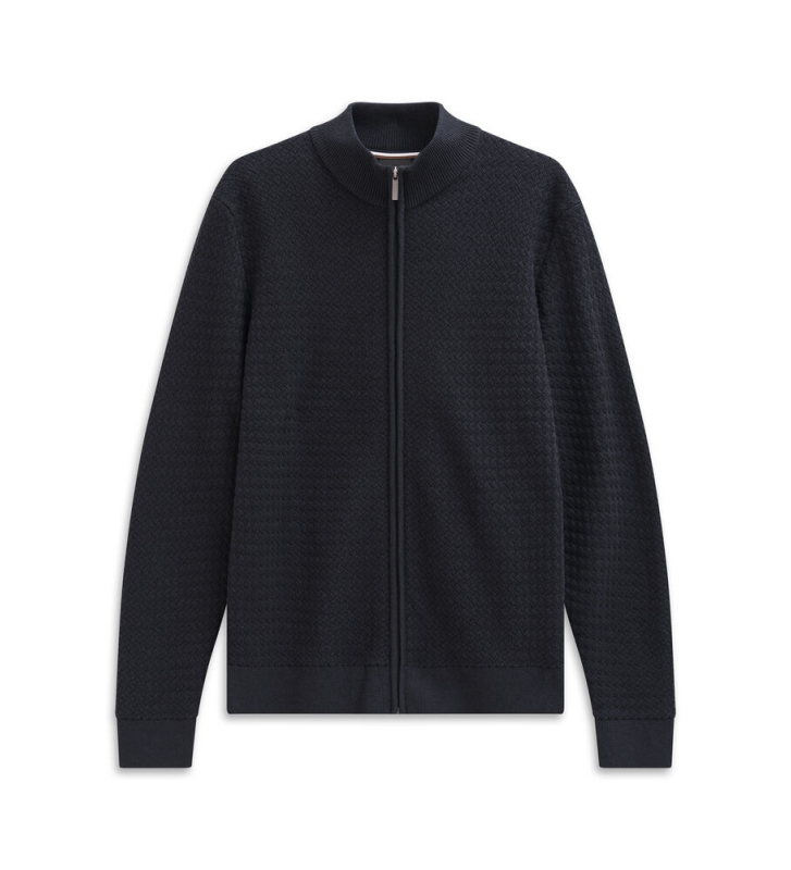 Застежка-молния позволяет носить его как в элегантном стиле – как легкий кардиган к рубашке, так и в более свободном варианте – с футболкой под ним.