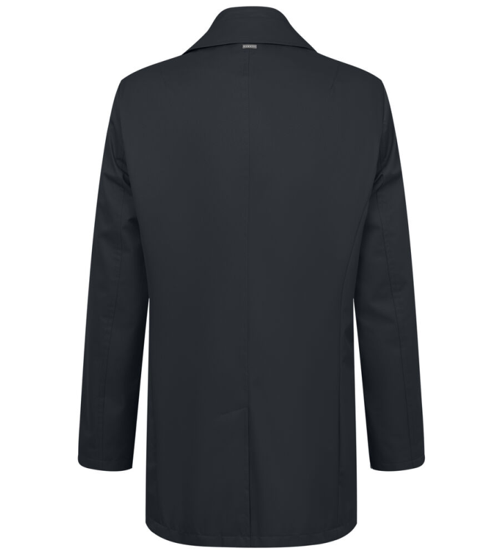 Пальто с отложным воротником и съемной жилеткой. Карманы по шву. Видимая планка на пуговицах и разрез сзади. Однотонная подкладка и внутренние карманы. Изделие впечатляет своей структурой и водоотталкивающим покрытием.
