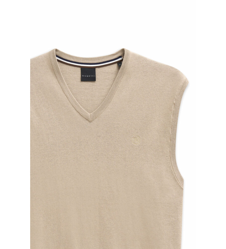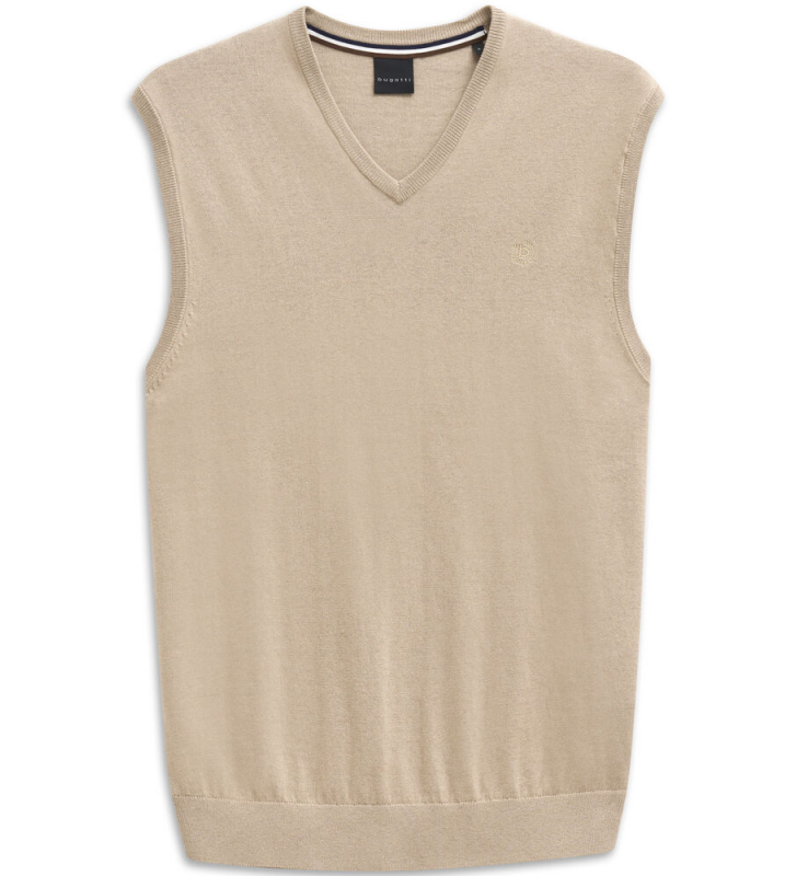 Жилет отличается гладким трикотажем, подчеркнутым изящным вышитым логотипом Bugatti на груди.