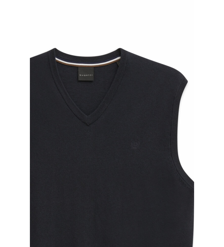 Жилет отличается гладким трикотажем, подчеркнутым изящным вышитым логотипом Bugatti на груди.