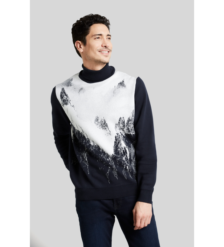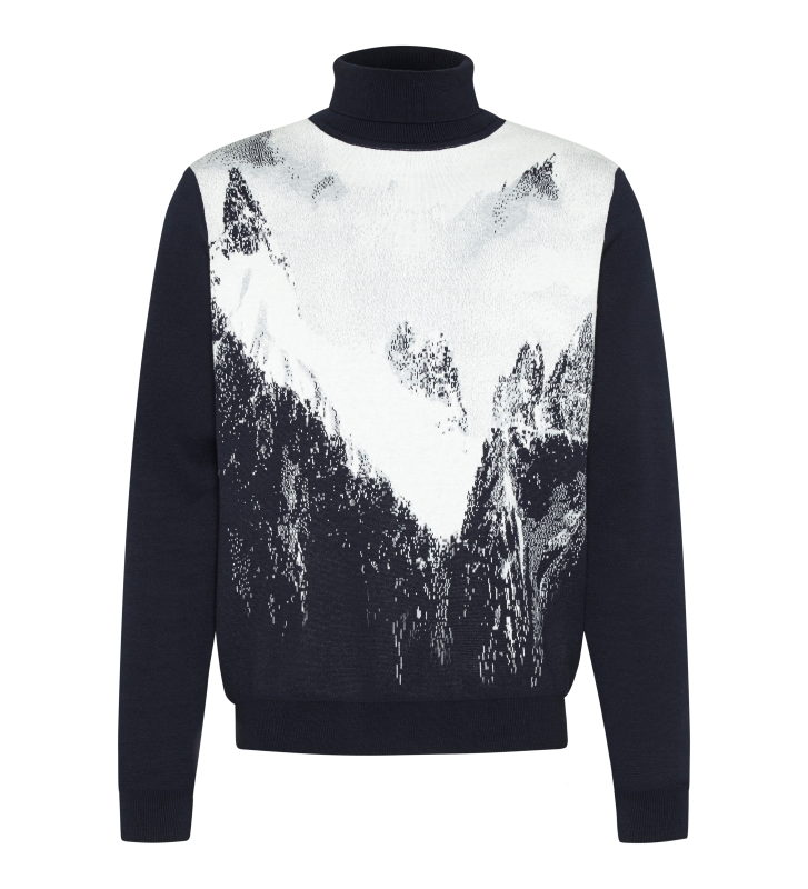 Горы зовут. В этом стильном гольфе с вязаным зимним горным пейзажем вам захочется провести уютный вечер перед камином или отправиться на зажигательную прогулку по снегу. Высокий воротник сохранит тепло.