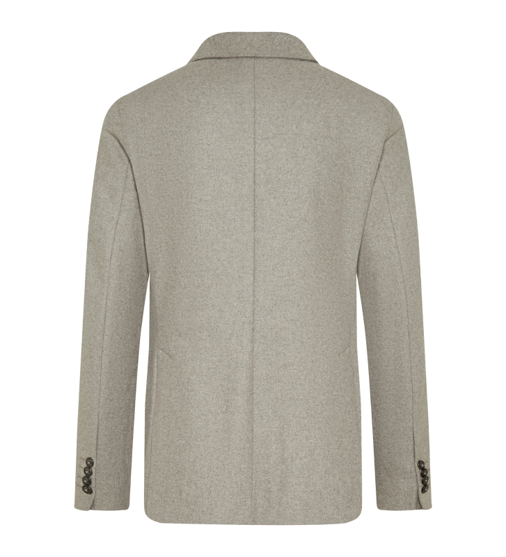Новый жакет с воротником с лацканами, круглыми плечами, накладными карманами и клатчем. Модель без подкладки, внутри имеются накладные карманы из замшевой кожи. Изделие Woolten by Manteco изготовлено из переработанной шерсти и экономит 87% воды и 74% выбросов CO2 только при производстве.