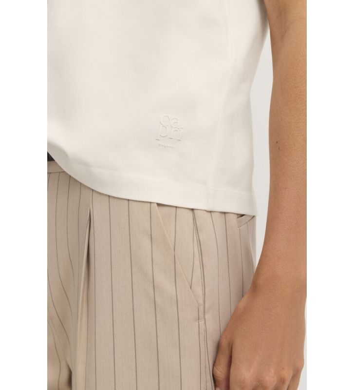 Простая футболка с круглым вырезом и ненавязчивым логотипом белого цвета