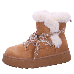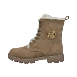 Легкие и универсальные, эти бежевые ботинки имеют гибкую подошву из EVA с рифлеными деталями и подкладку из искусственного меха для комфорта, тепла и хорошей изоляции от холода. Украшенные декоративными ремешками, дополняющими их дизайн со шнуровкой...