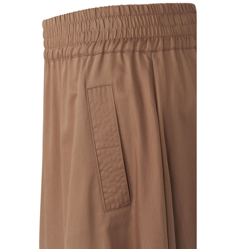 С эластичным поясом и прорезными карманами,