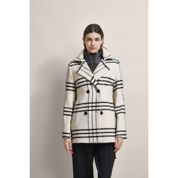 Женское пальто из шерсти в клетку от Bugatti, со съемным нейлоновым воротником и двубортной застежкой на пуговицах.Это пальто сочетает в себе классическую элегантность и современные детали.Подкладка bugatti Flexcity гарантирует максимальный комфорт.Ш..