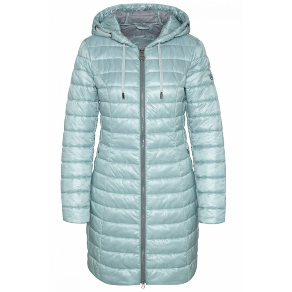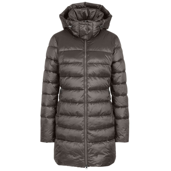 Женское пальто изготовлено из переработанного нейлона и волокон Sorona из возобновляемого сырья.Специально стеганый вид, удобный воротник-стойка и съемный капюшон создают спортивный образ.Контрастные детали в интерьере расставляют яркие акценты. Внут..