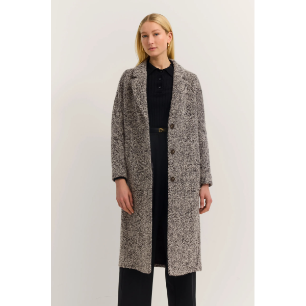 Длинное пальто строгого кроя с лацканами и классическими прорезными карманами можно сочетать как женственно, так и в спортивном стиле. Удобный интерьер FLEXCITY также обеспечивает уникальный комфорт при ношении. Принт на подкладке расставляет цветовы..