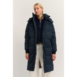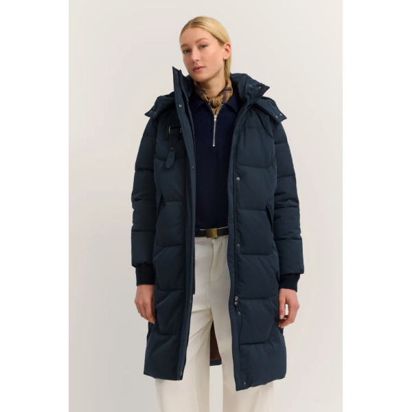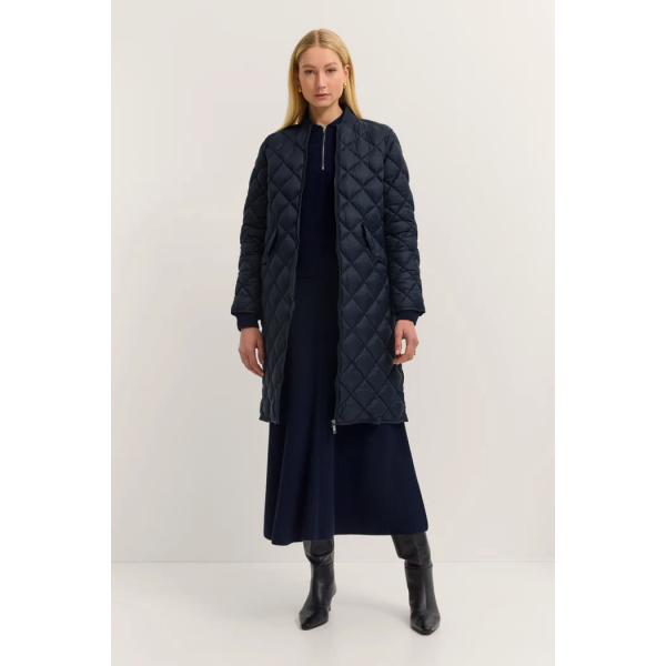 Стеганое пальто с отстегивающимся капюшоном и воротником-стойкой в темно-синем цвете.Регулярный крой – удобный и женственныйОсобый стеганый узор – модный и элегантныйОтстегивающийся капюшон – гибкость в носкеВоротник-стойка защищает от ветра и холода..