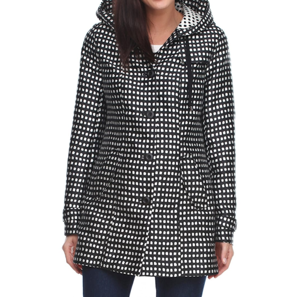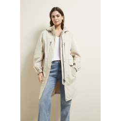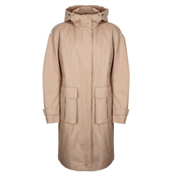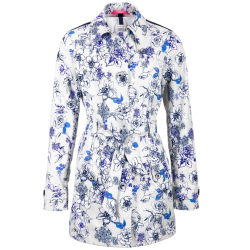 Повседневный женский плащ из водоотталкивающей двухцветной хлопковой ткани с капюшоном, прорезными карманами и карманами на молнии, а также поясом на шнурке.Принт на внутренней стороне расставляет яркие акценты.Хлопковая смесьС водоотталкивающими сво..