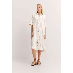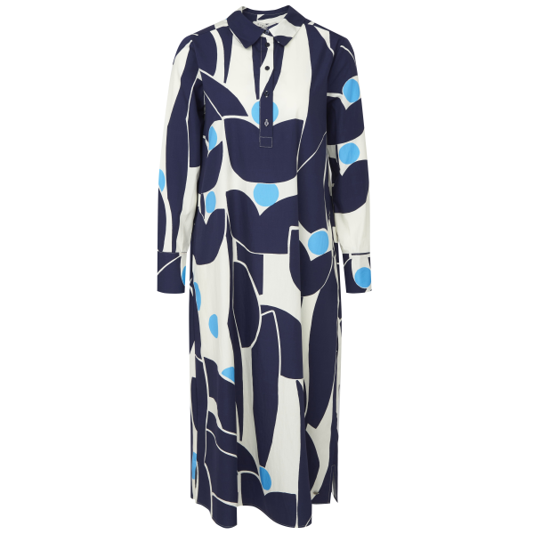Платье-рубашка из 100% хлопка с графическим принтом. Платье застегивается на половину пуговицы и имеет карманы в боковом шве...
