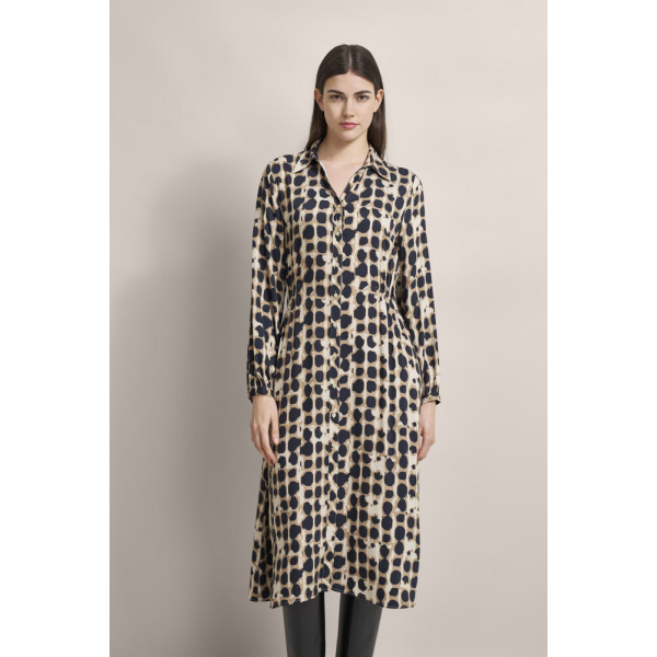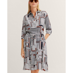 Почувствуйте стильную элегантность в платье-рубашке от bugatti.Это платье из 100% вискозы с принтом подчеркивает вашу фигуру благодаря слегка зауженной талии и практичным деталям.Графический принт и женственный V-образный вырез идеально дополняют дру..