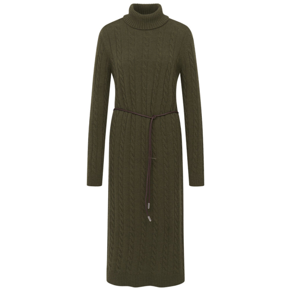 Стильное шерстяное платье с узорами «косы» от Bugatti.Имеет идеальный состав - для теплого и стильного комфорта.Трикотажное полотно, вывязанное «косами» и длина макси - подчеркнут вашу женственностьНасыщенный цвет хаки - шик премиум-сегмента.Высокая ..