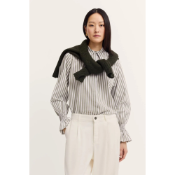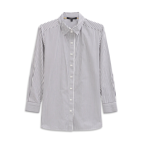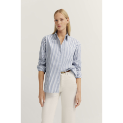 Женская полосатая блуза-рубашка с застежкой на пуговицы из 100% хлопка.С застежкой на пуговицыС принтом в полоскуПрямой кройМожно стирать при температуре до 30 градусов..