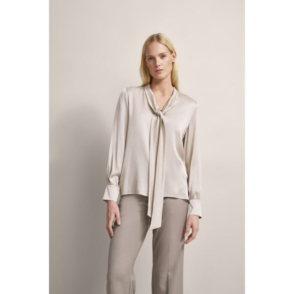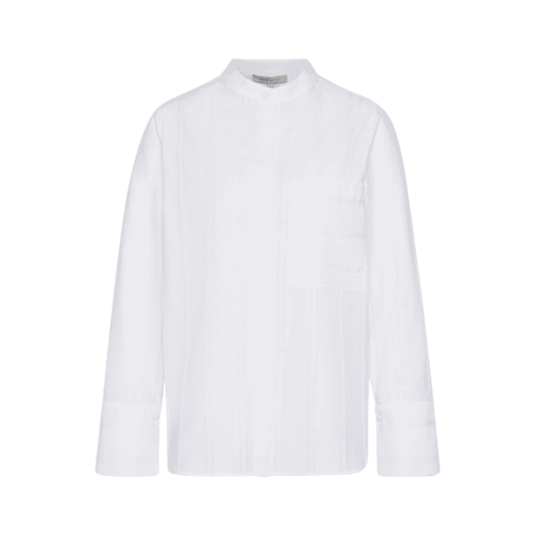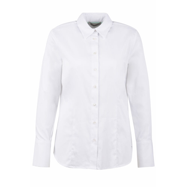 Структурированная блузка со скрытой пуговичной застежкой изготовлена из 100% высококачественного хлопка. Круглый воротник, широкие манжеты и карман в области груди подчеркивают характер блузки. Идеальный компаньон для кардигана, а также для самостоят..