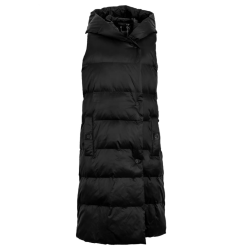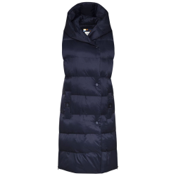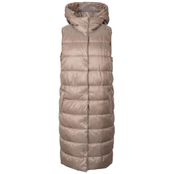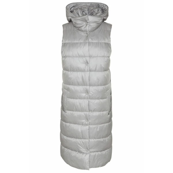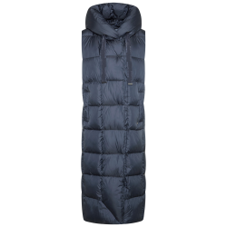 Длинный жилет с прикрепленным капюшоном, боковыми молниями, декоративной тесьмой на плече, карманами и боковыми разрезами из переработанного нейлона. В качестве экологически чистого и согревающего наполнителя используется волокно Sorona на основе воз..