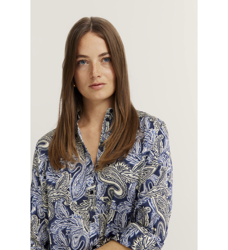 Блуза имеет завышенную линию плеча и горловины, что придает изюминку.