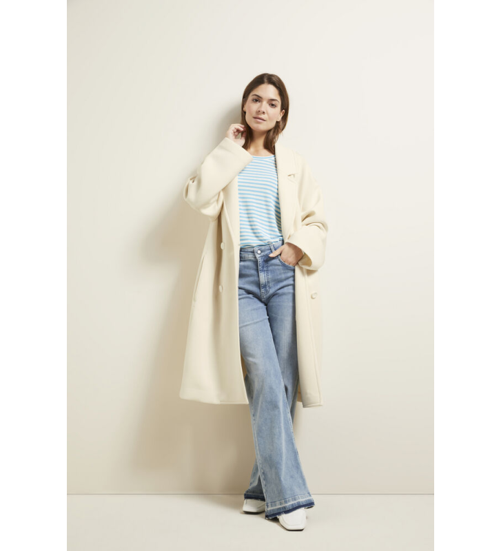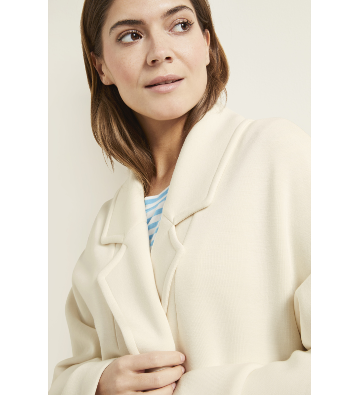 Неопреновое пальто с глубокими лацканами и отделкой в виде кимоно спереди. Швы Bugatti сзади.