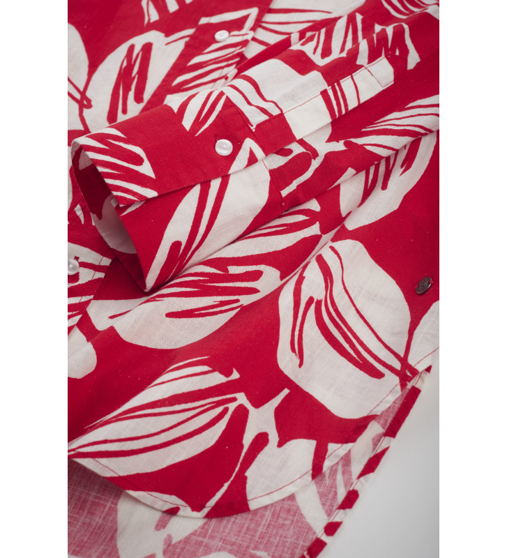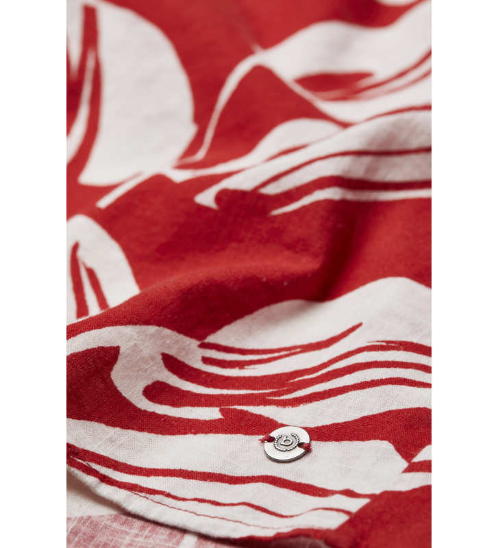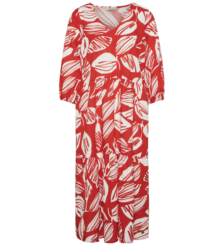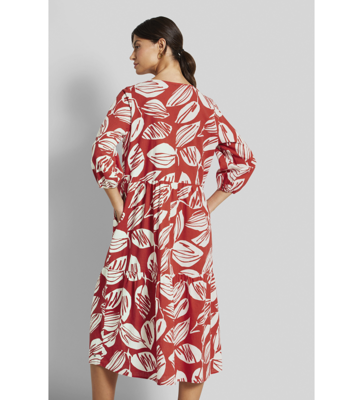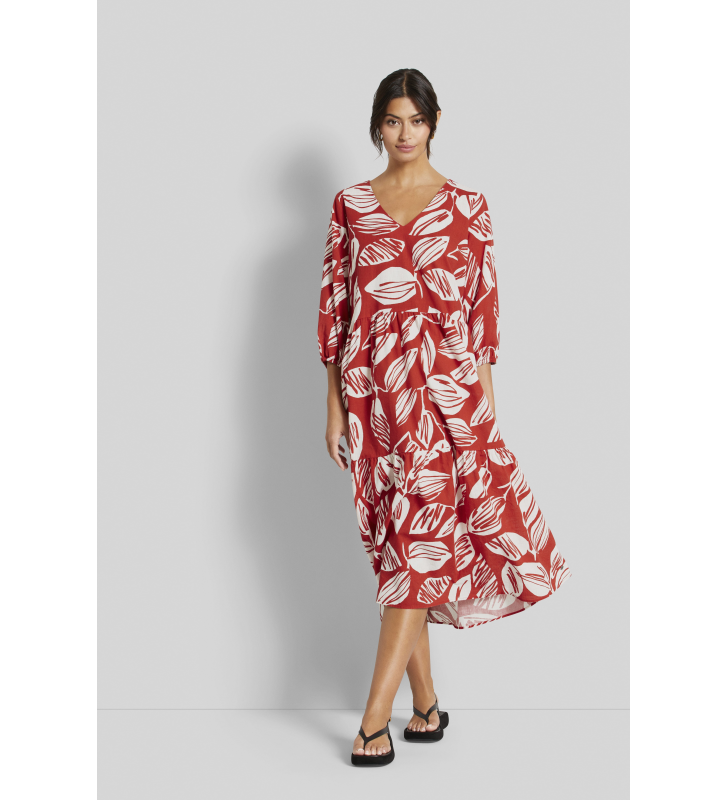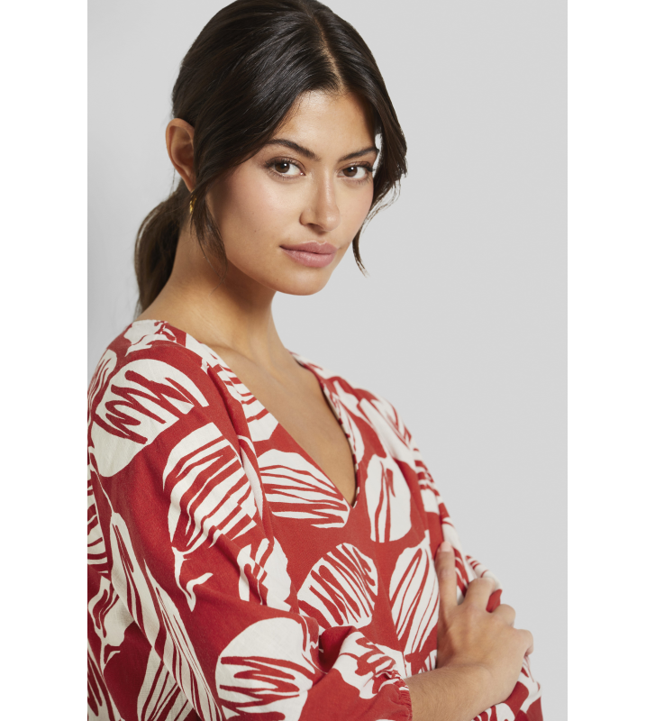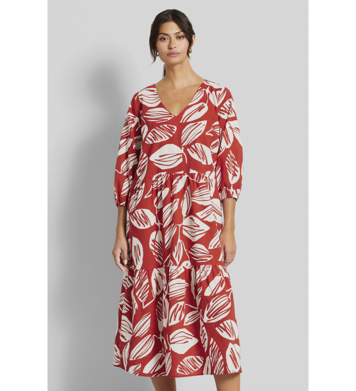 Платье с принтом из хлопка/льна с V-образным вырезом,