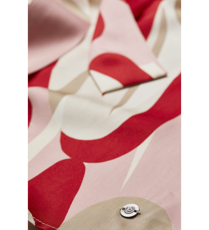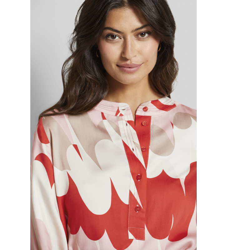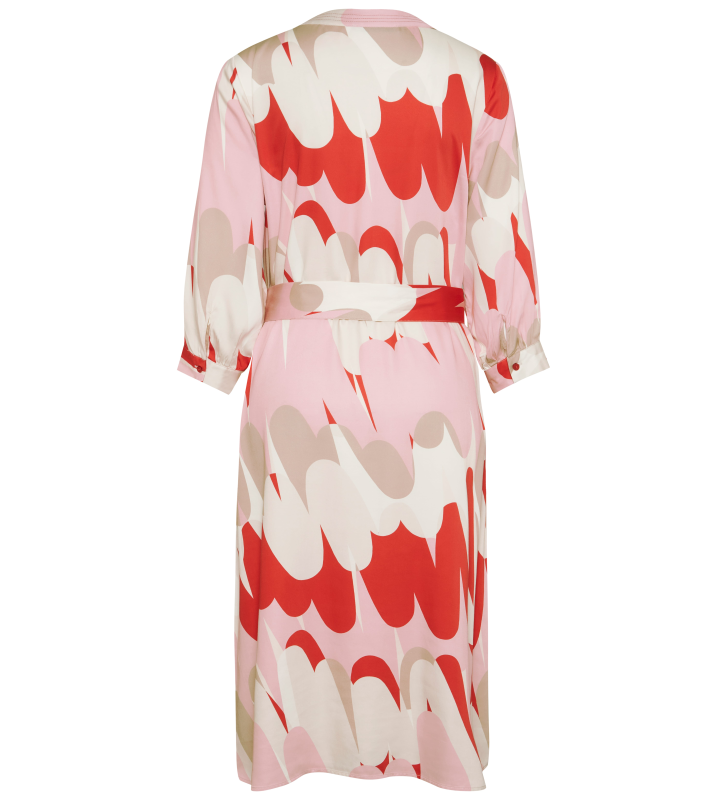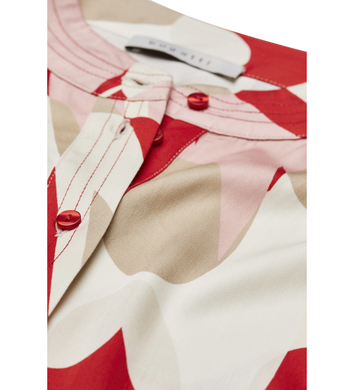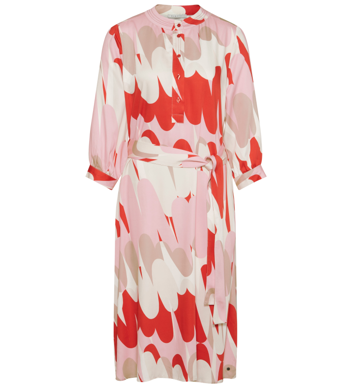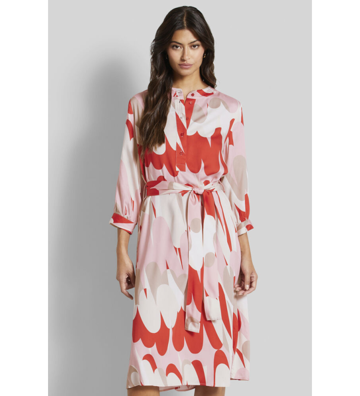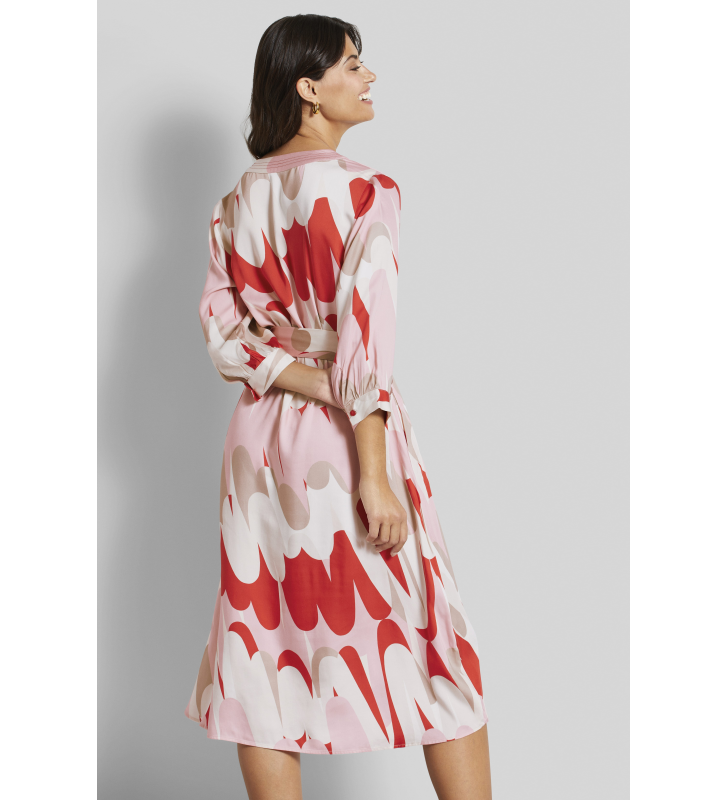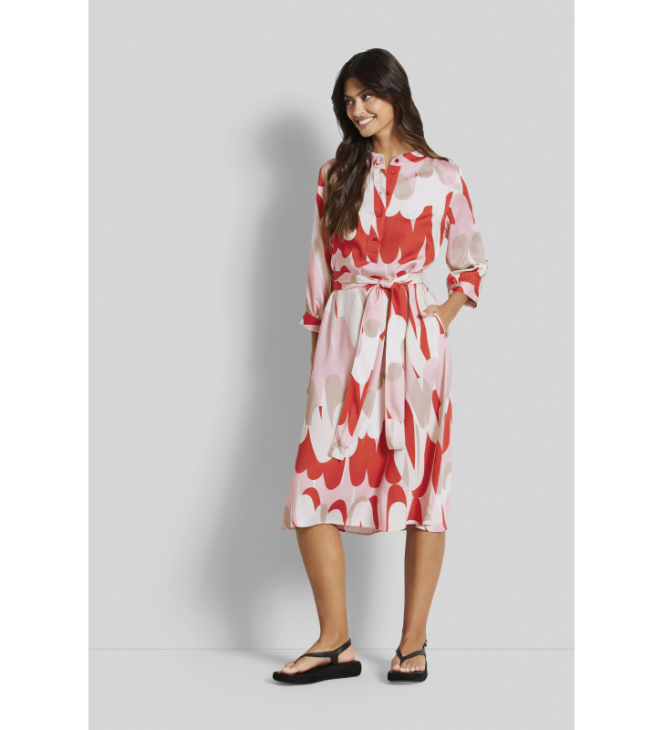 Платье из вискозы с круглым вырезом, планкой на полупуговицах и боковыми карманами.