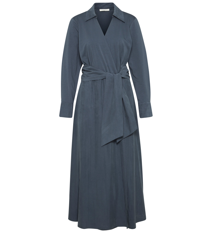Легкое женское платье по запаху. Сочетание лиоцелла и согревающего полиэстера и длинных рукавов обеспечивает необходимый комфорт. Ремень спереди добавляет модный штрих. •