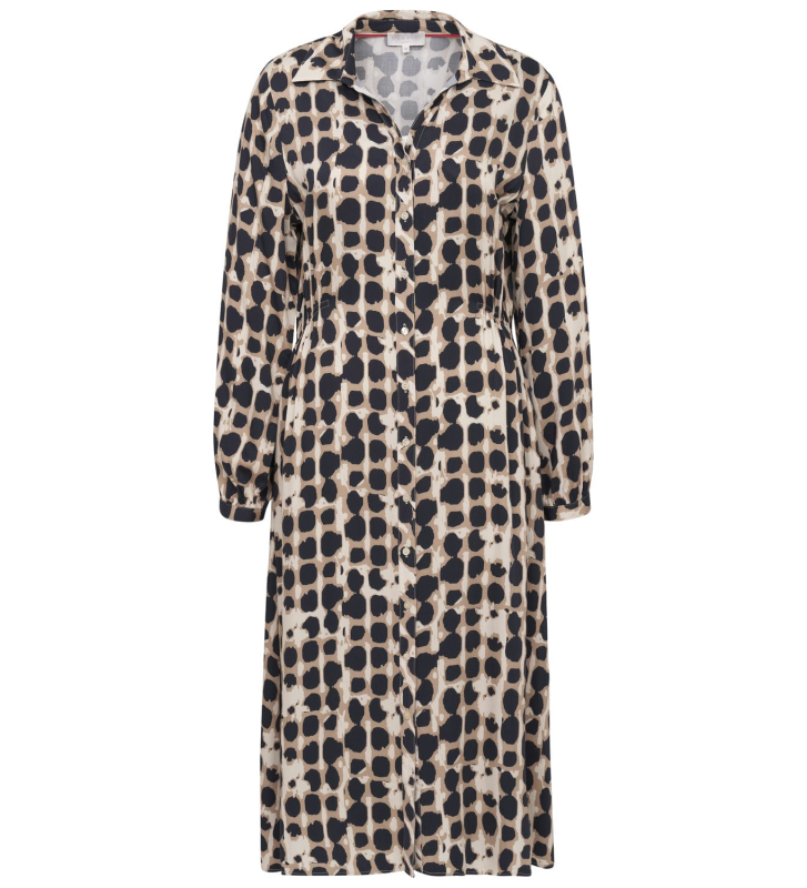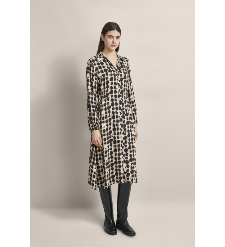 Это платье из 100% вискозы с принтом подчеркивает вашу фигуру благодаря слегка зауженной талии и практичным деталям.