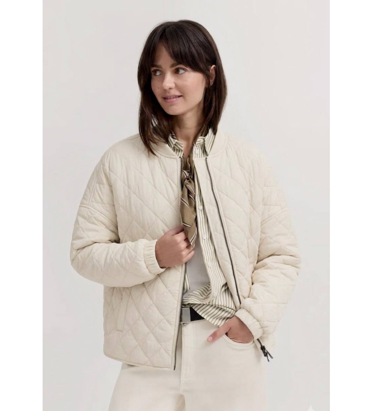 Сучасний дизайн з ромбоподібним стьобанням і укорочений крій забезпечують сучасний вигляд, а комір-стійка і бічні розрізи додають спортивної нотки.